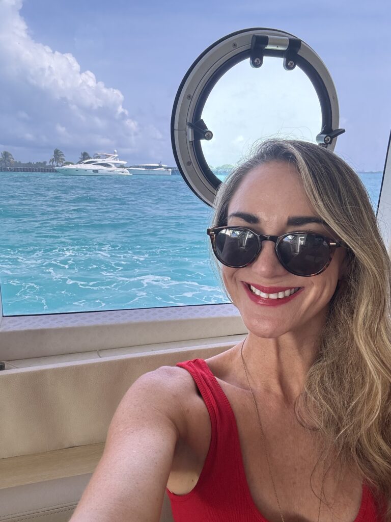 From Malé, the bustling capital island of the Maldives, we hopped on a quick 15-minute speedboat ride arranged seamlessly through our resort, Hard Rock Maldives. The airport itself is unlike anything I’ve ever seen, perched right on the water’s edge, where rows of sleek boat taxis replace the usual buses. Instead of honking traffic, the harbor is alive with the hum of motors and the constant movement of boats zipping in and out. Compared to the quiet, laid-back arrival in Bora Bora, Malé felt like stepping into a vibrant water city, full of energy and motion from the very start.