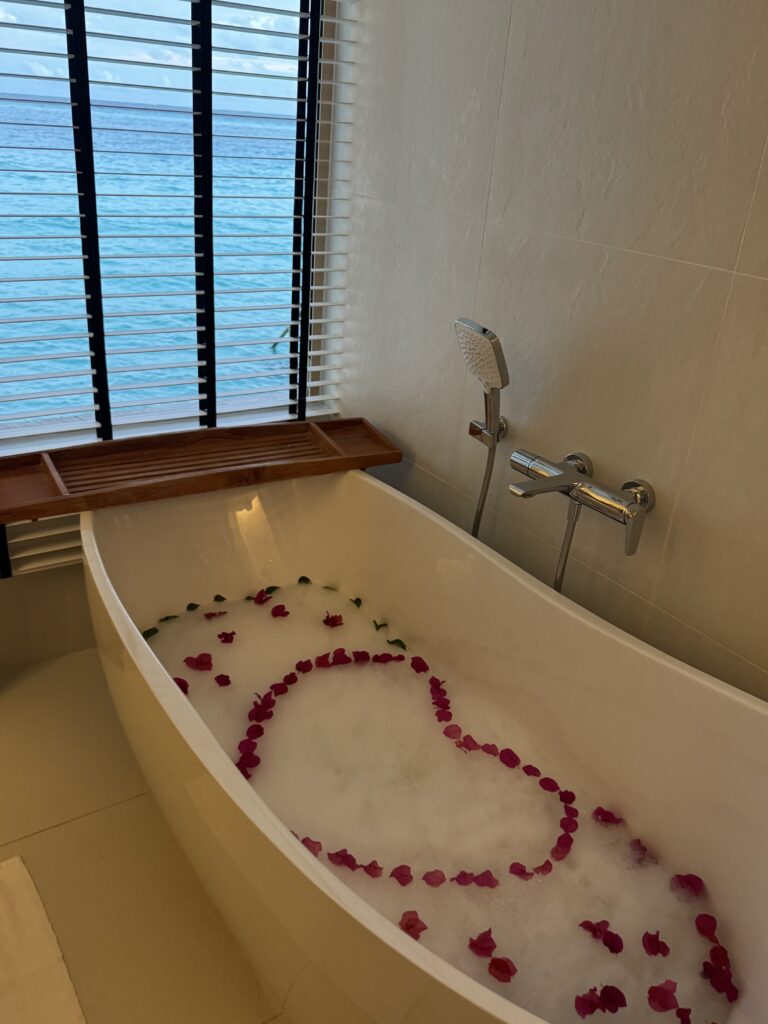 We chose an overwater bungalow with a private pool again (Diamond Overwater Private Pool Villa), but this time the atmosphere was different. The Hard Rock is lively, social, and full of entertainment. Plus, it’s all-inclusive (unlike Bora Bora). With our upgraded premium package, we enjoyed unlimited dining and cocktails, floating fruit trays, champagne bubble baths, and high tea service.