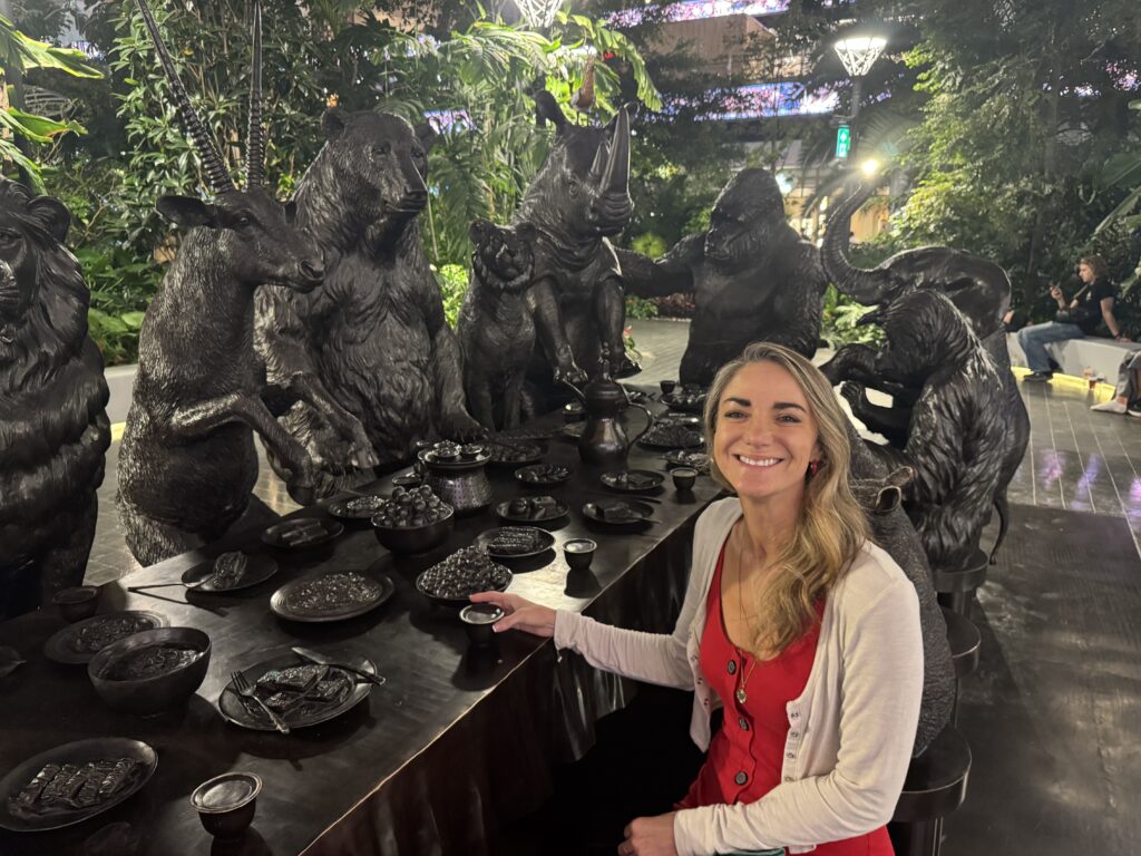 One of the best parts about Hard Rock Maldives was the sheer variety of dining and experiences right at our fingertips, each spot offering its own unique setting and vibe. Our first night was at Miss Olive Oyl, a dreamy restaurant with candlelit outdoor seating, coconut drinks, peach cocktails, and freshly-made gnocchi, all while overlooking the sparkling water and even catching glimpses of Malé in the distance. Scattered throughout the resort were lush gardens where fresh herbs and vegetables were grown, a detail that made every dish feel vibrant and fresh. Mornings could start with free yoga near the check-in area, followed by a dip in the huge pool lined with bar seats and playful swings in the water. For lunch and dinner, The Elephant and the Butterfly quickly became a favorite, sitting right on the water with delicious plates like fresh açaí bowls. Sessions, the all-day buffet, was another highlight. Imagine scraping raw honeycomb for your toast while watching the waves roll in. Of course, the iconic Hard Rock Café stood out with its welcoming staff (many from India and Sri Lanka), a lively atmosphere, and a patio that opened right onto the ocean. Every night featured live music, and throughout the week, we saw couples enjoying private beachfront dining setups or even exchanging vows in barefoot weddings on the sand. Between the food, the atmosphere, and the entertainment, the resort felt like a little world of its own.