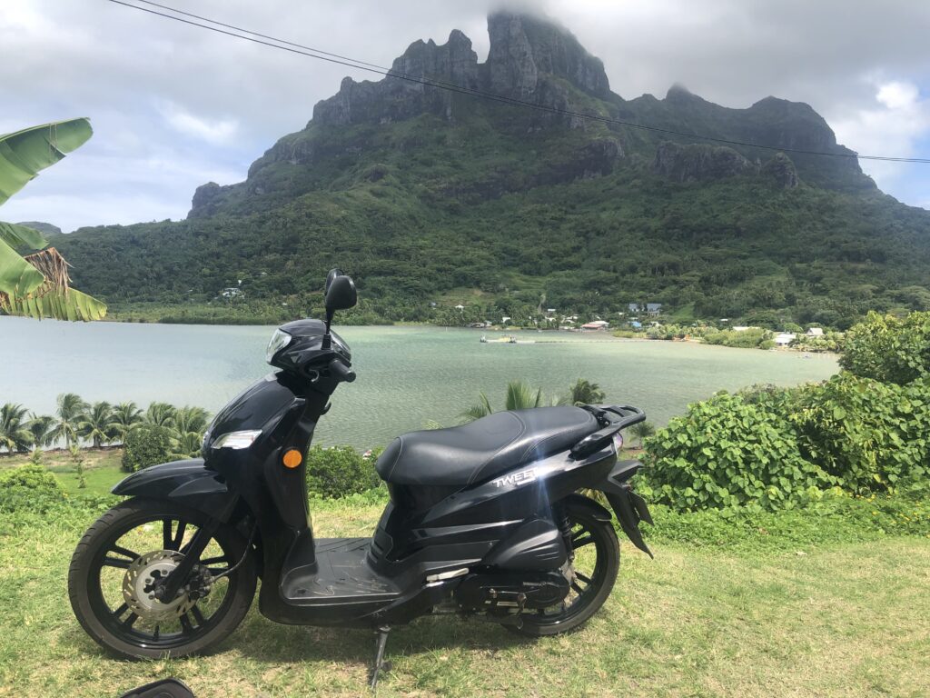 One day, we decided to venture beyond our resort and booked a boat ride to the main island of Bora Bora. Once we arrived, we hopped on the mopeds we had arranged online ahead of time. After a quick crash course (and me showing off my skills to prove I could handle it 😉), we got the green light and were off! Cruising around the island turned into one of the most epic rides I’ve ever taken.