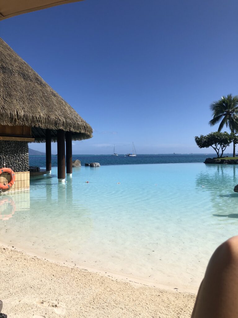 Since our onward flight wasn’t until the next day, we stayed overnight at InterContinental Tahiti Resort & Spa, which had one of the most stunning infinity pools I’ve ever seen. The next morning, we boarded a short Air Tahiti flight to Bora Bora, where our resort had already arranged a boat transfer.