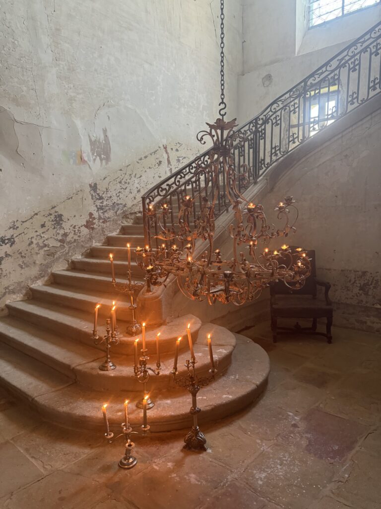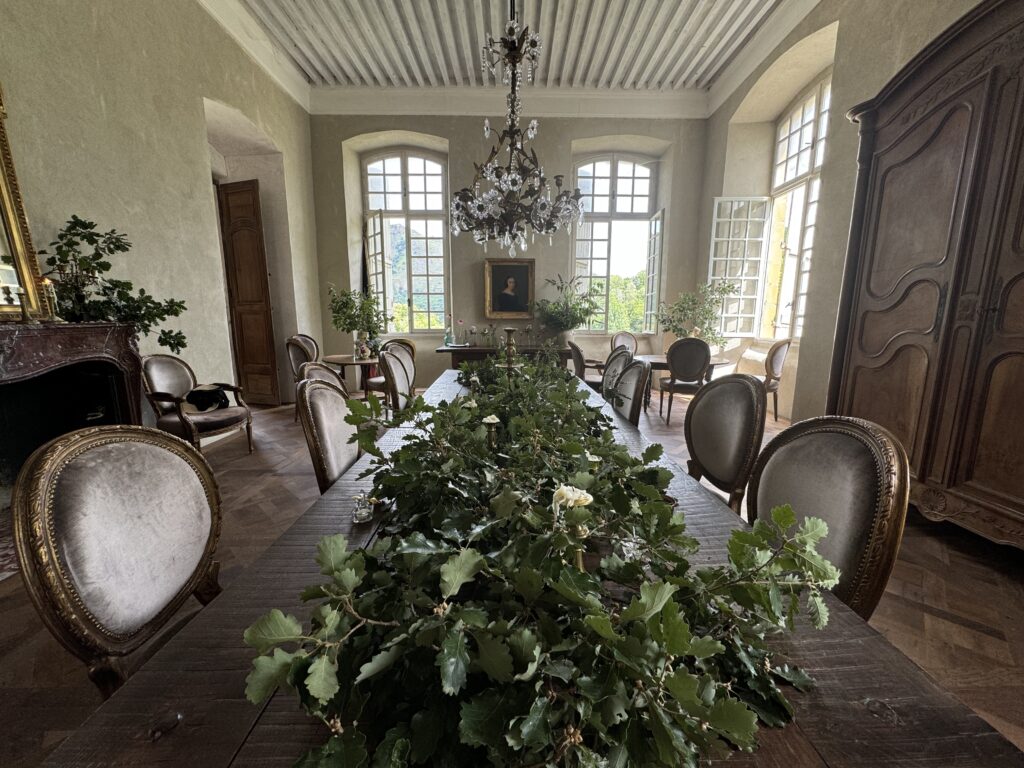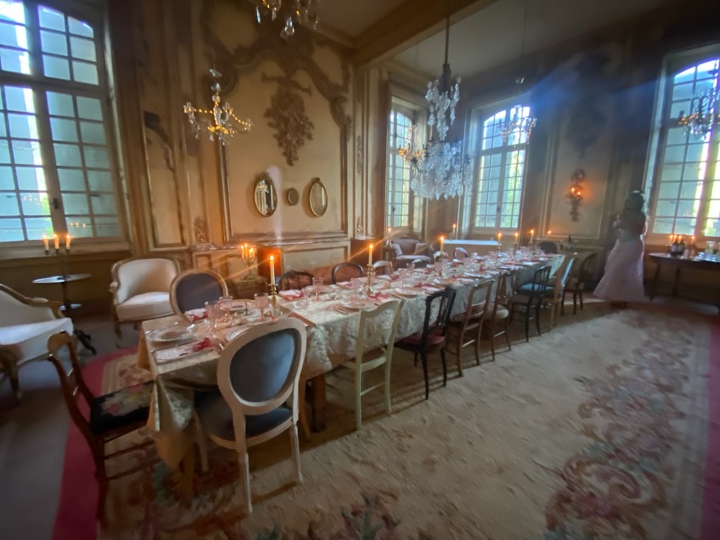 Every morning began with a stunning display of freshly made jams, warm breads, quiches, and mimosas. All lit by candlelight in different rooms of the château. For instance, on Day One, we had breakfast in the Salon de Porcelaine, where large chandeliers were adorned with branches and fresh florals, and our coffee was served in exquisite 1800s porcelain. Open windows looked out over the gardens, and each table held fresh-cut blooms.