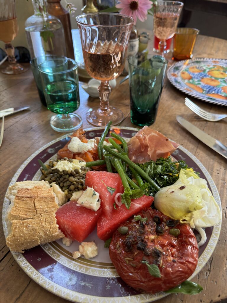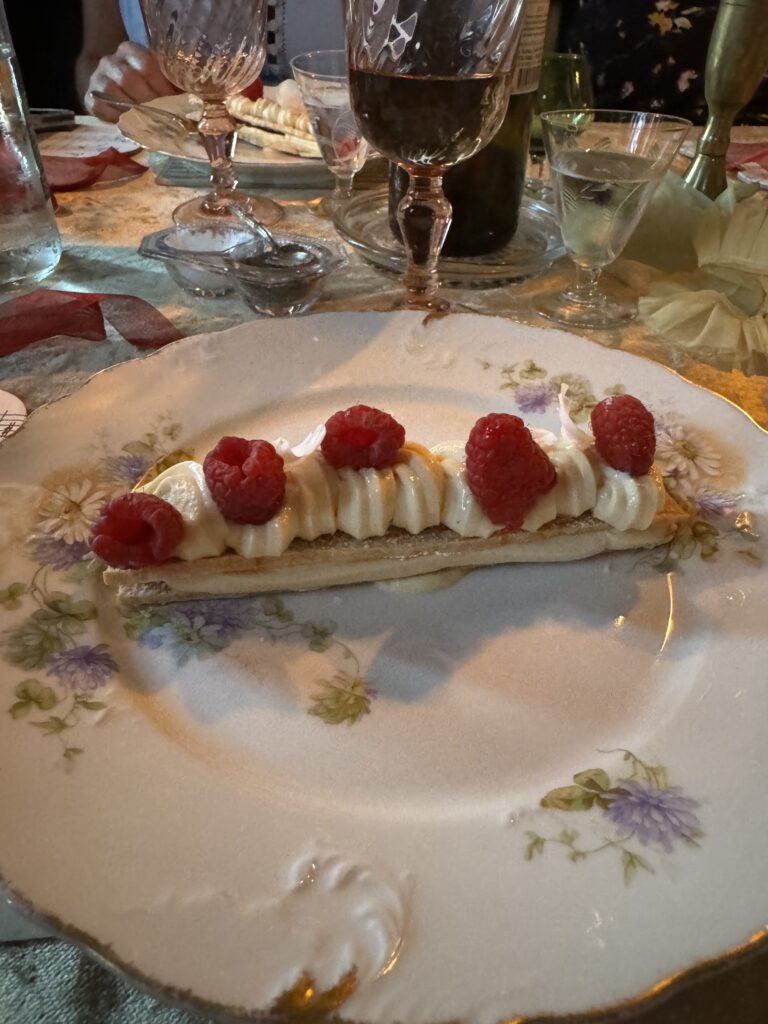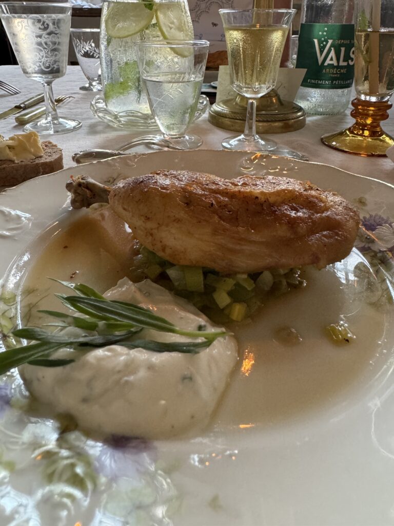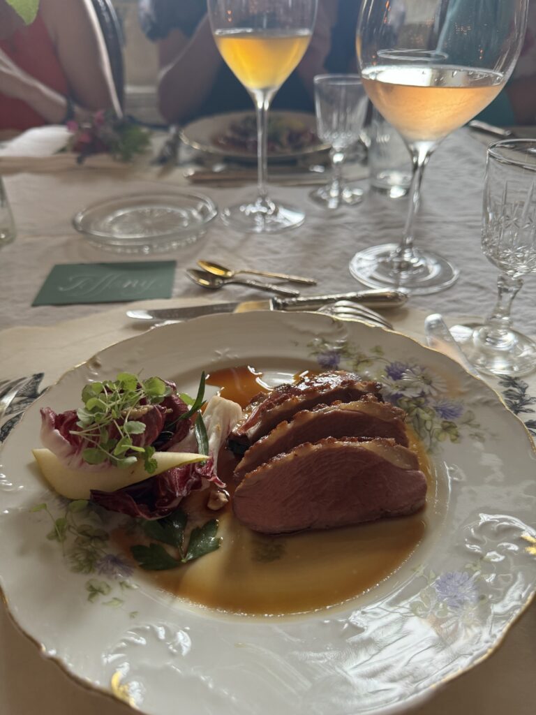 One of the most delightful surprises of our stay? The meals. Each dish was a masterpiece, thoughtfully prepared by chefs from around the world and plated with the kind of elegance you usually only see in magazines. We savored delicate quiches, vibrant garden salads, decadent pastries, and so much more, all bursting with fresh flavor and visual charm. Every meal felt like an experience in itself, enjoyed in a different room of the château each day, often by candlelight and surrounded by antique porcelain and seasonal florals. At the heart of it all was Tracy Valentina Wood, the head chef and a professional food stylist whose artistry elevated each meal beyond anything I could’ve imagined. From garnishing with garden-fresh blooms to using thyme sprigs, mint leaves, and powdered sugar like edible decor, she turned simple ingredients into works of art. The presentation was so stunning, I found myself pausing to admire the detail before even picking up my fork. ✨