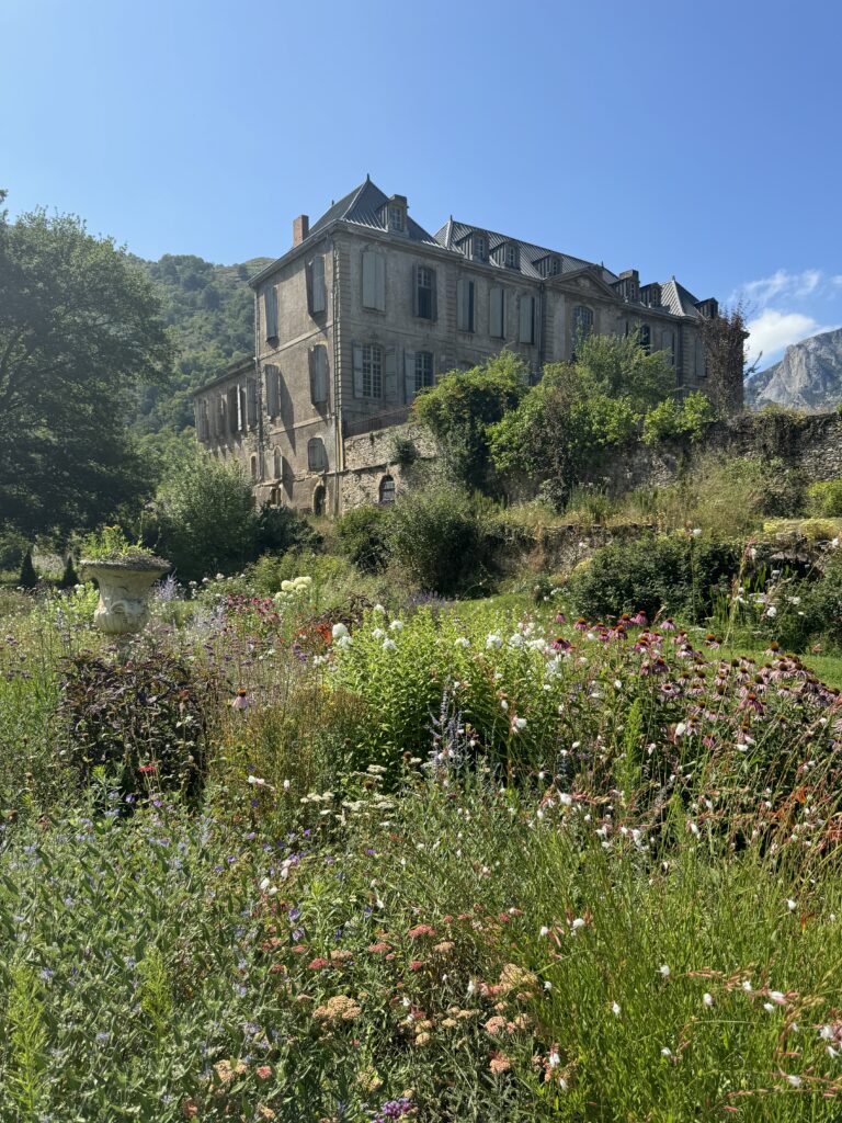 We stepped onto a gravel road, wildflowers lining the path, and within moments, the château appeared in the distance; regal, romantic, and framed by the Pyrenees Mountains. Large teal shutters flanked the wide open windows. Two stone staircases led up to the towering front doors. As we reached the ancient double gates, gasps, wide eyes, and pure awe filled the air.