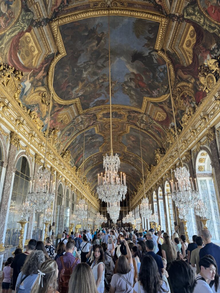 After a whirlwind first day in Paris — landing that morning, exploring the Louvre, sipping late-night apéritifs at Banana Café, and catching the dazzling Moulin Rouge show — we somehow popped out of bed with a surprising amount of energy. Maybe it was the delicious 4 a.m. burgers we Ubered into the hotel from Smash City 🤭, but by 9:30 a.m., we were dressed, caffeinated, and ready for our group tour of Versailles.